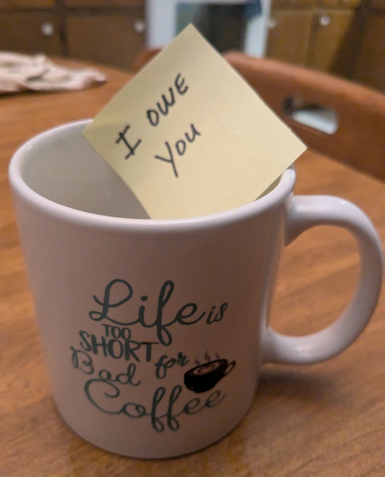 My temporary banishment from some of these simple pleasures in life will soon be over. And when it is, I’m going to sip my hot coffee, bite into a crunchy piece of warm buttery toast covered with Tammy’s homemade jelly, and be grateful. I’m reminded of a line from an old hymn about God’s faithfulness “All I have needed thy hand hath provided…” It’s true. So why do I worry about the rest?